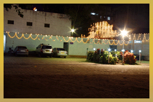This is a specially designed A.C hall with elevated stage for the bride and can accommodate beyond 200 guest. It is provided with a separate A/C dressing room for the bride, situated adjacent to the stage.