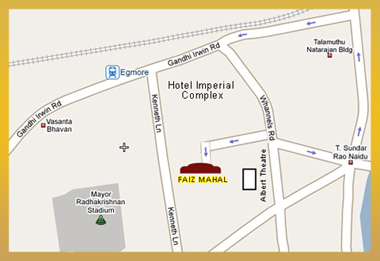 • Located in the heart of the city at Egmore, Chennai. It is inside Hotel Imperial Complex (Opp. Railway Station)